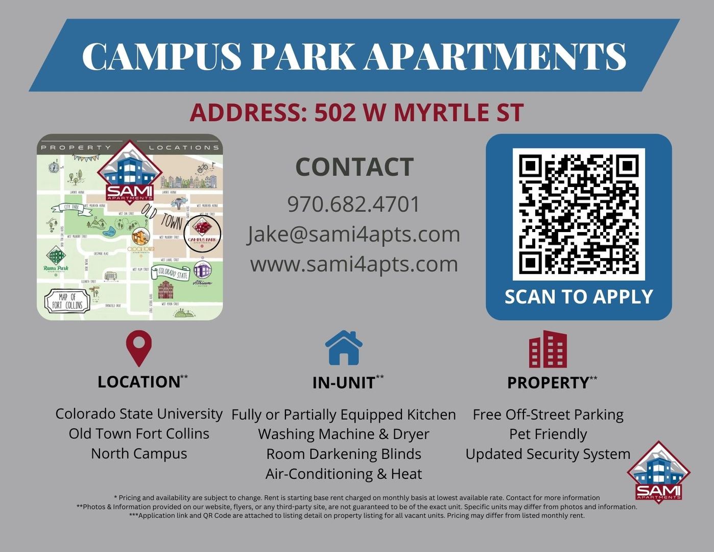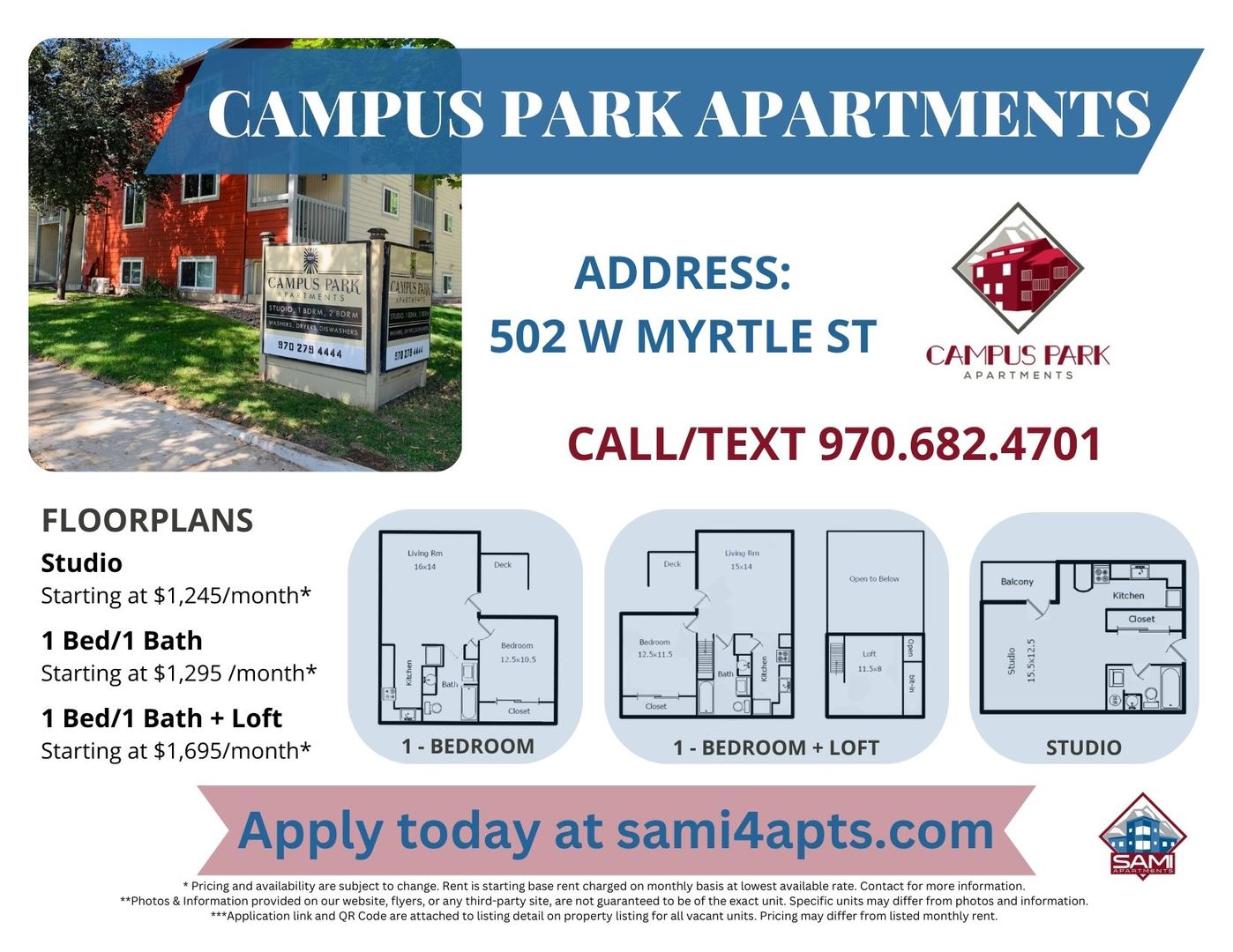 Campus Park Apartments offers an outstanding location just blocks away from Colorado State University and Old Town Fort Collins.